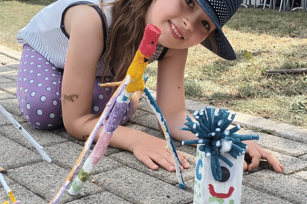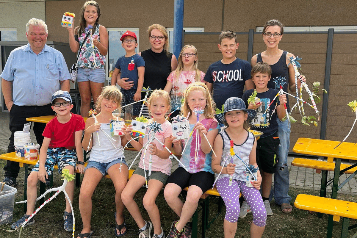 Wie das geht? Man nehme Astgabeln aus dem Wald, die Kinder aus Thiersheim und Umgebung, viel Farbe, Angelika Wunderlich und kreative Ideen. Und ruckzuck entsteht eine coole Truppe an lustigen Waldgeistern. Zum gruseln sind sie eher nicht wie man sieht. Eher lustige Gesellen.