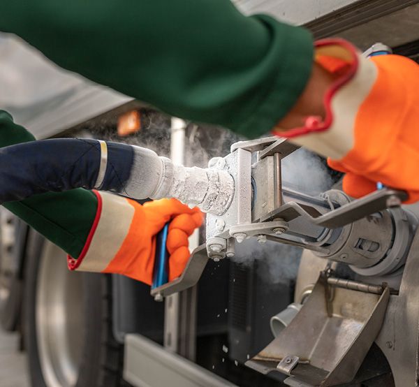 LNG (liquefied natural gas) ist verflüssigtes, tiefkaltes Erdgas. Ab minus 162 Grad Celsius wird es flüssig und kann unter Einhaltung hoher Sicherheitsstandards getankt werden. Im Moment gilt es als der einzige Treibstoff, der dazu beiträgt, den Schwerlastverkehr CO2-neutraler zu gestalten. Zudem fahren LNG-Trucks erheblich leiser als gewöhnliche Diesel-Modelle. Ab 2023 soll das flüssige Erdgas durch biogenes (grünes) Methan ersetzt werden. Bereits heute werden die Motoren so gebaut, dass es dafür dann keiner Umrüstung mehr bedarf.